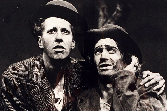 Gibson and Geoffrey Rush in Waiting for Godot, at Australia's National Institute of Dramatic Art, 1979.